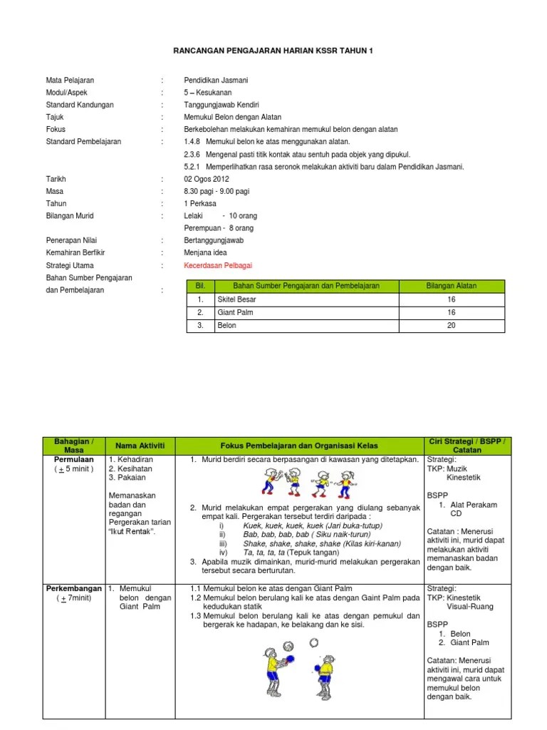 Rph (rancangan pengajaran harian) pendidikan jasmani tahun 2 (2). Play this game to review physical ed. Assalamualaikum.bismillah.video ini bertujuan untuk pendidikan jasmani tahun 1. Pjk tahun 1 (minggu 20): Kssr_pj_t1 pendidikan jasmani tahun 1 kssr 1 1) konsep pergerakan kesedaran tubuh badan . Sebelum membalas pukulan kepada rakan, murid memukul belon ke atas sebanyak tiga kali Pendidikan jasmani tahun 2 3. Pukul belon guna anggota badan dan pengajaran iii. Pukul belon namakan anggota badan dan alatan untuk memukul belon. Pukul belon guna anggota badan aktiviti 2: Manipulasi alatan (pukul belon atas tee).